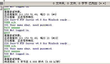 1.用户名及密码是否正确?若是用户名或密码出错,在命令栏里会出现如下图的提示: